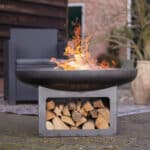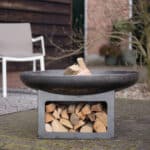 • Moderne vuurschaal met ingebouwde houtopslag